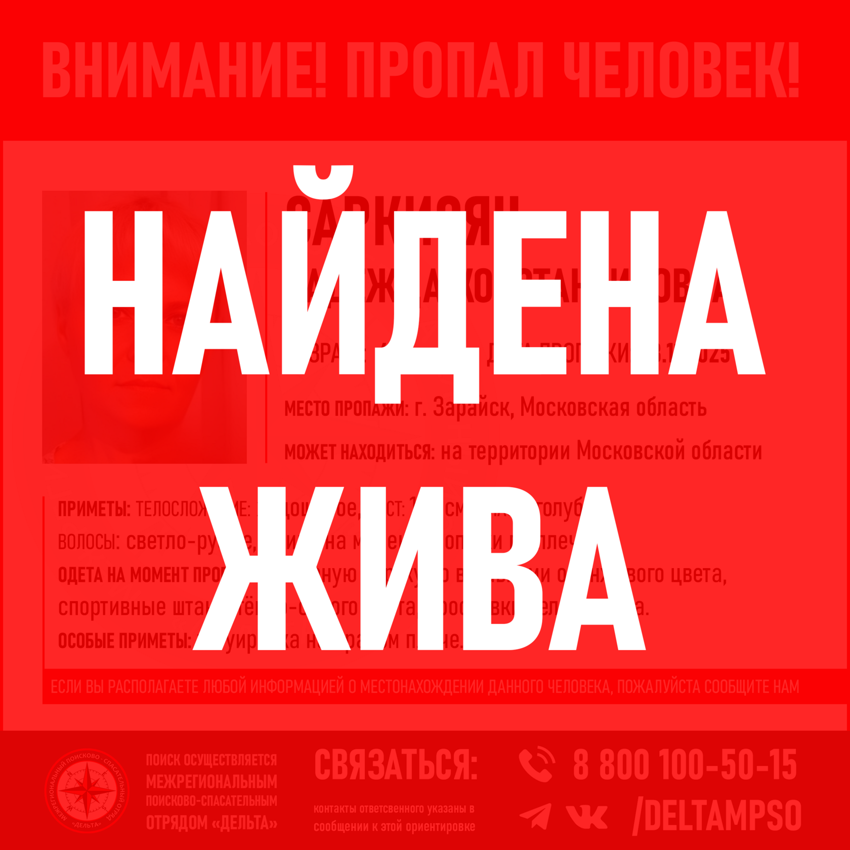 09.11.2025 НАЙДЕНА. ЖИВА!