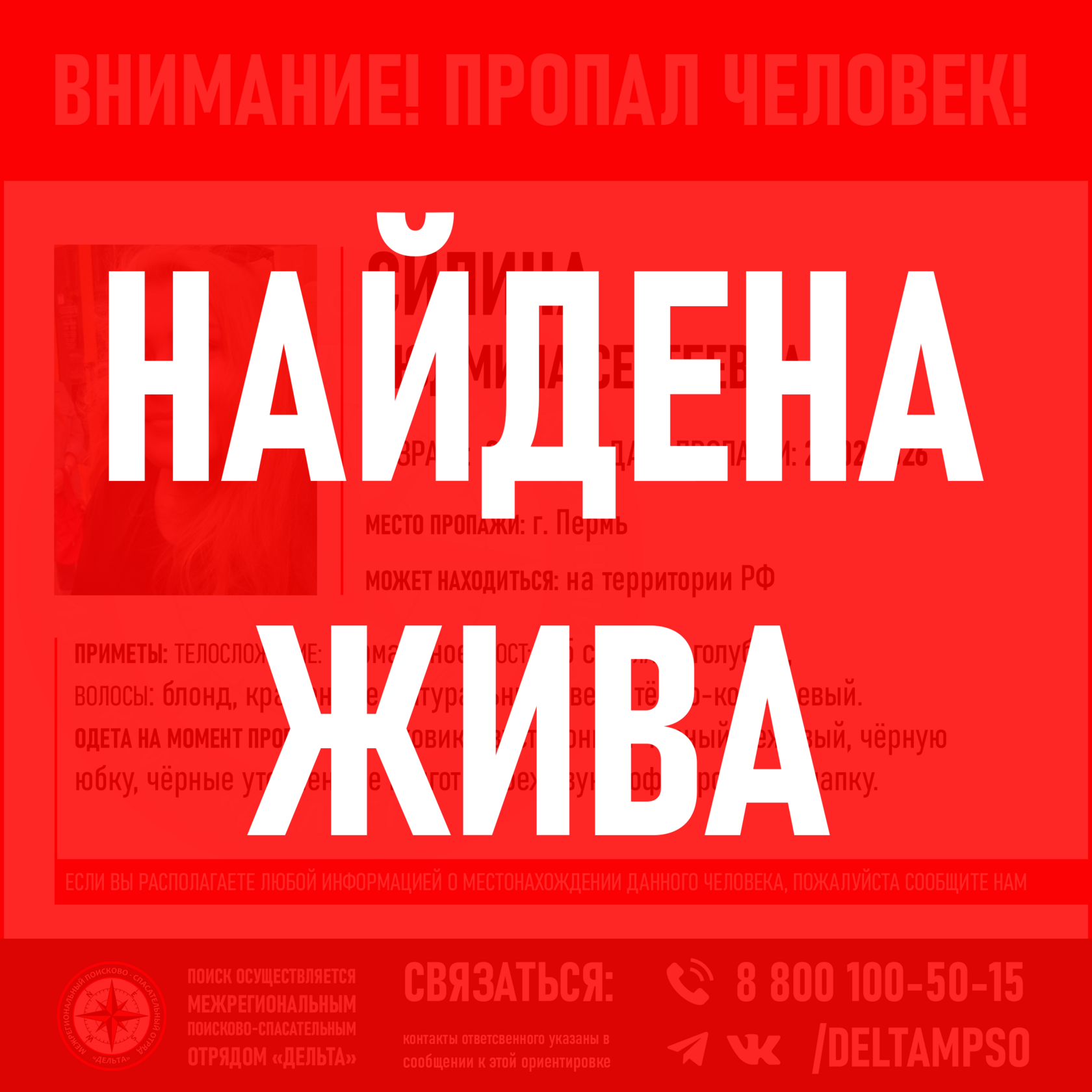 10.03.2026 - НАЙДЕНА. ЖИВА!